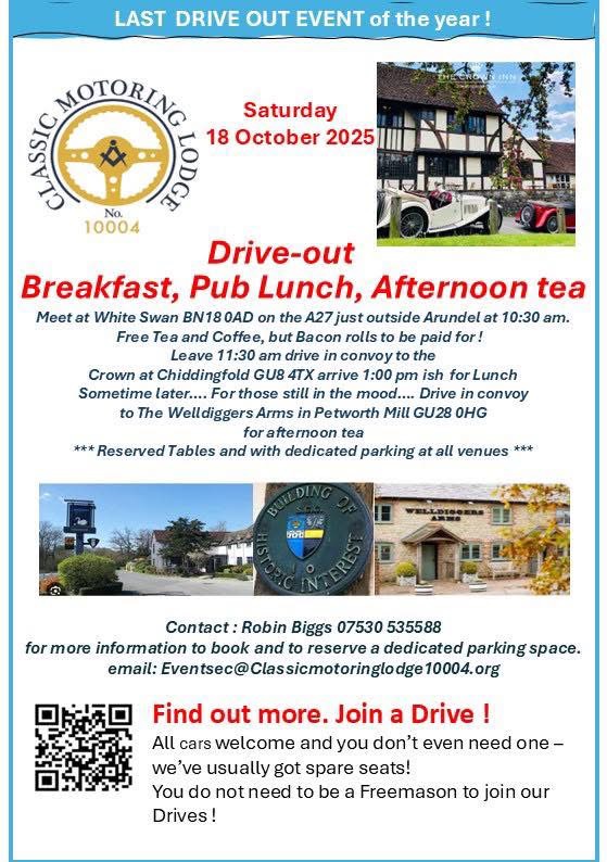 Crown at Chiddingfold GU8 4TX arrive 1:00 pm ish for Lunch Sometime later… For those still in the mood…. Drive in convoy to The Welldiggers Arms in Petworth Mill GU28 0HG for afternoon tea