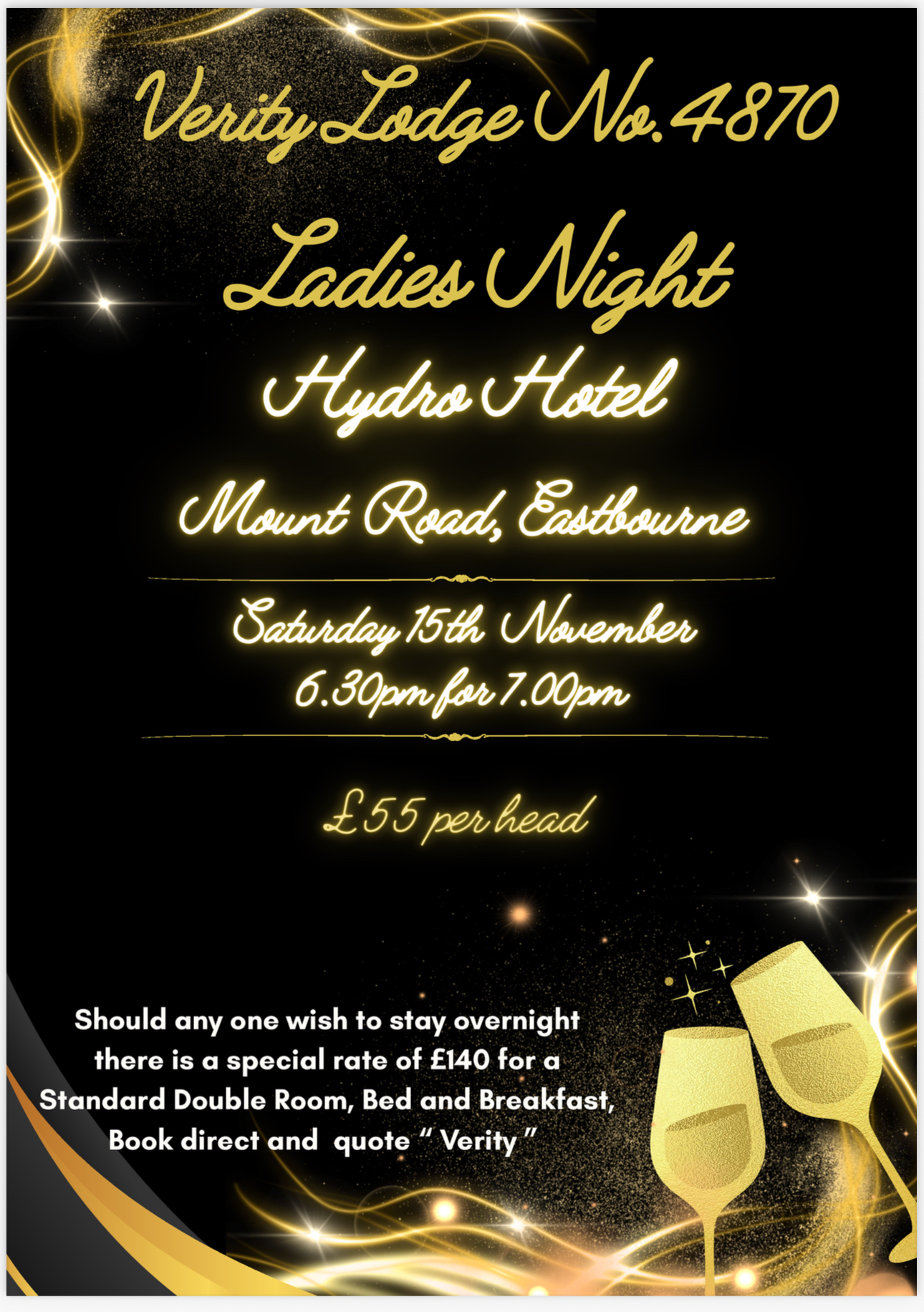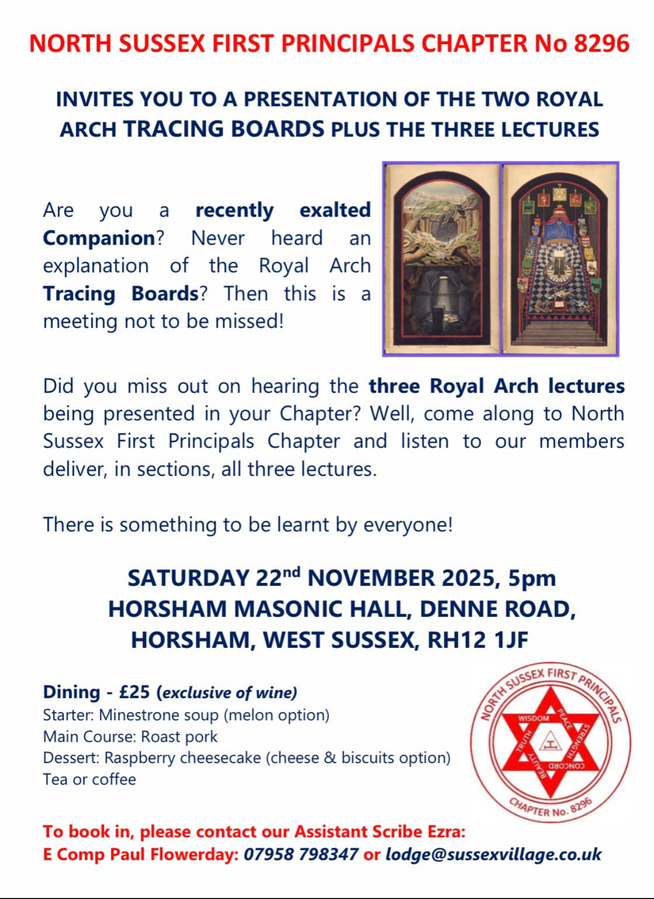 To Book yourself in Click on the link below: Click here to book your place Format of the day 12:00 Royal Arch Installation – Seated by 11.45am 15:00 Craft Installation – Seated by 14.45am 16:15 Golden Ticket receptions/drinks 17:30 Dinner Dining - The cost of dining is £39.00 (excludes wine) which has been subsidised by ... Read more